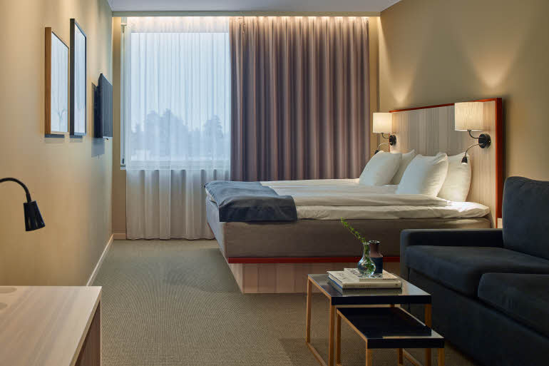 Bo bekvämt nära gaten i något av våra 150 rum i skandinavisk design med ljusa träslag och nyanserade textilier som ger en harmonisk och ombonad känsla. I vår restaurang njuter du av god mat och dryck i skön atmosfär. Träna i vårt välutrustade gym eller koppla av i bastun. Moderna möteslokaler i olika storlekar för upp till 100 deltagare finns.